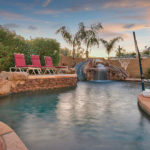 WOW! Amazing updated home with resort style backyard pool that has a built-in slide, waterfall and grotto next to your covered patio with set up for outdoor TV and BBQ island.