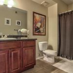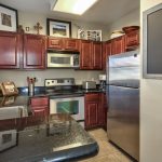The elegantly appointed Bella Terra clubhouse include a spacious lounge, business center, and fitness center, as well as an outdoor resort-size pool, hot tub, and grills. With an open floor plan and natural light streaming through its nearly half dozen windows, this bright and airy condo is outfitted with updated stainless steel appliances, granite counter-tops, and stunning dark cherry wood cabinetry in both the kitchen and bathroom.